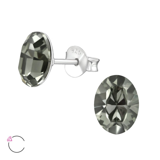 Sterling zilver 925 ovaal oorbellen black diamond kristal. Materiaal : 925 sterling zilver Afwerking : E-coat Grootte: 6 mm x 9 mm Verpakt in een b...