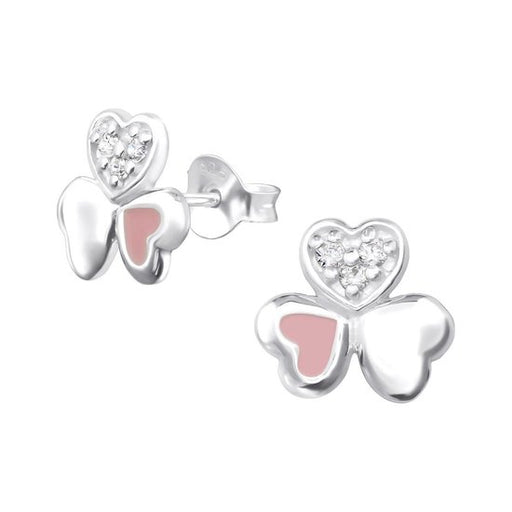Alle gegevens bekijkenJoy|S - Zilveren klaver oorbellen - 3 hartjes - roze met zirkonia - oorknoppen