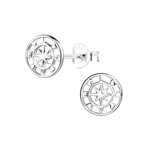 Sterling zilver 925 ronde kompas oorbellen met hele kleine hartjes daarin verwerkt. Afmeting: 8 mm x 8 mm Bewerking: E-Coat Materiaal: Sterling zil...