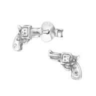 Sterling zilver 925 pistool oorbellen. Afmeting 8 mm x 6 mm Materiaal: Sterling zilver 925 Afwerking: Geoxideerd, E-coat Verpakt in een bijbehorend...