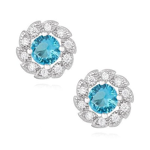 Joy|S - Zilveren rond oorbellen - 8.5 mm - fantasie bloem - zirkonia aqua marine blauw - gehodineerd