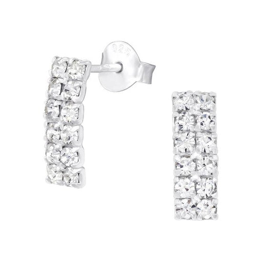 Sterling zilver 925 rechthoek oorbellen licht gebogen met zirkonia Afmeting: 4.5 mm x 12 mm Materiaal: Sterling zilver 925 Afwerking: E-coat Steens...