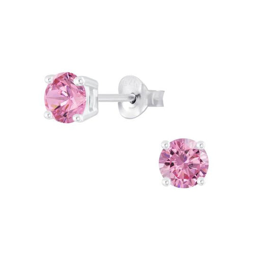 Sterling zilver 925 rond oorbellen met zirkonia roze Design grootte: 5 mm x 5 mm Bewerking: E-Coat Materiaal: Sterling zilver 925 Steensoort: Zirko...