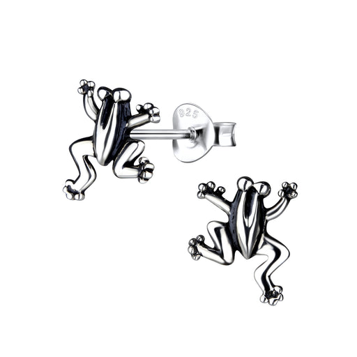 Sterling zilver 925 kikker oorbellen. Materiaal: Sterling zilver 925 Afwerking: Geoxideerd, E - coat Afmeting: 8 mm x 10 mm Verpakt in een bijbeho...