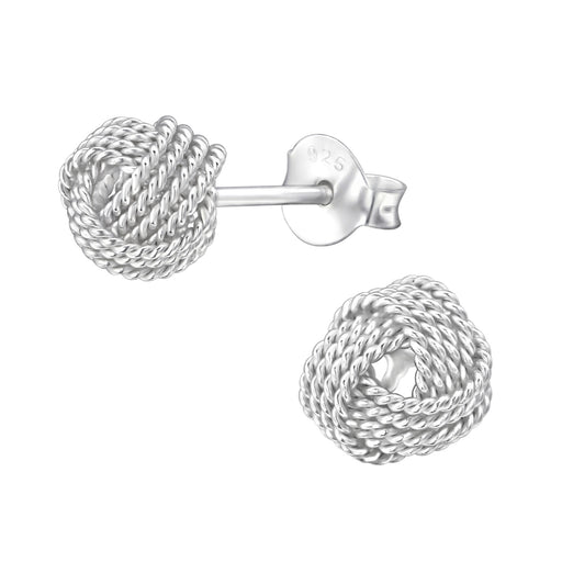 Sterling zilver 925 knot / knoop oorbellen - platinum plated. Afmeting design: 7 mm x 7 mm Materiaal: Sterling zilver 925 Afwerking: Platinum, E-co...