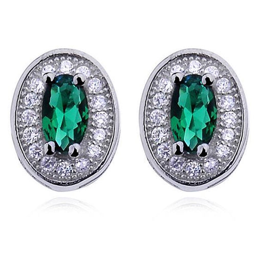 Alle gegevens bekijkenJoy|S - Zilveren klassieke ovale oorbellen 9 x 7 mm emerald groene zirkonia - gehodineerd