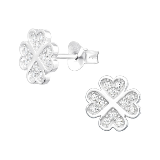 Sterling zilver 925 klaver vier oorbellen met zirkonia. Afmeting: 7 mm x 8 mm Materiaal: Sterling zilver 925 Afwerking: E-coat Verpakt in een bijb...