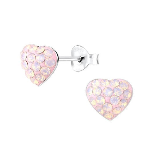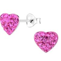 Sterling zilver 925 hart oorbellen met kristal roze. Materiaal : 925 sterling zilver Afwerking : E-coat Grootte: 11 mm x 10 mm  Verpakt in een bijb...