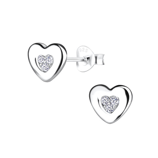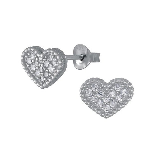 Sterling zilver 925 hart oorbellen met zirkonia Afmeting 8 mm x 7 mm Materiaal: Sterling zilver 925 Afwerking: E-coat Verpakt in een bijbehorend si...