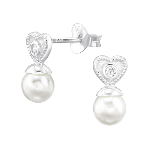 Sterling zilver 925 hartje met parel oorbellen met subtiele zirkonia. Materiaal : 925 sterling zilver Afwerking : E-coat Grootte: 6 mm x 12.5 mm  V...