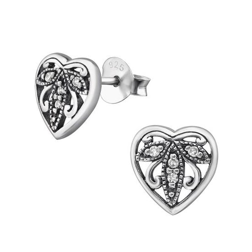 Sterling zilver 925 hartje oorbellen sierlijk bewerkt met zirkonia Afmeting design: 8 mm x 8 mm Materiaal: Sterling zilver 925 Afwerking: Geoxideer...