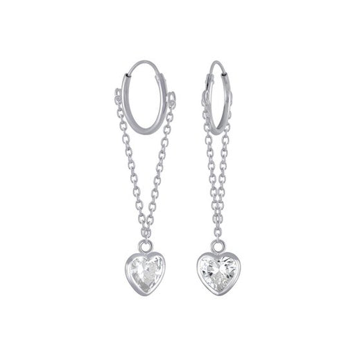 Joy|S - Zilveren hartje bedel oorbellen - oorringen met kettinkje - zirkonia