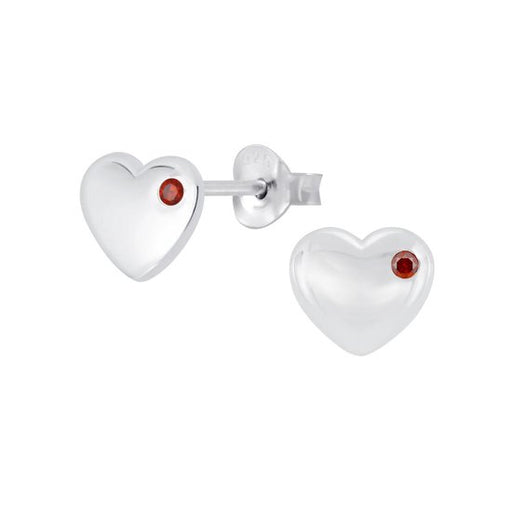 Joy|S - Zilveren hartje oorbellen met rode zirkonia - 8 mm