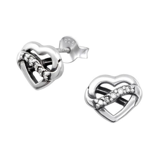 Joy|S - Zilveren hartje infinity oorbellen - 10 x 8 mm - zirkonia - geoxideerd