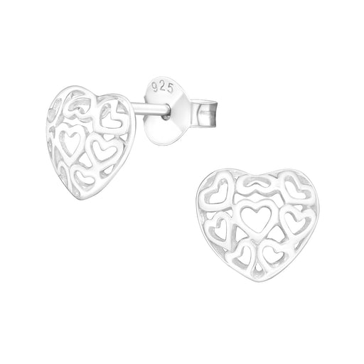 Joy|S - Zilveren hartje met kleine hartjes oorbellen - 7 x 8 mm