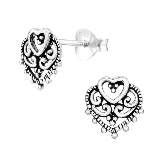 Sterling zilver 925 klassiek bewerkte hartje oorbellen - geoxideerd. Materiaal : 925 sterling zilver Afwerking : Geoxideerd, E-coat Grootte: 9.5 mm...