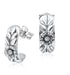 Sterling zilver 925 bloem met blaadjes massieve oorbellen - halve hoepel stud