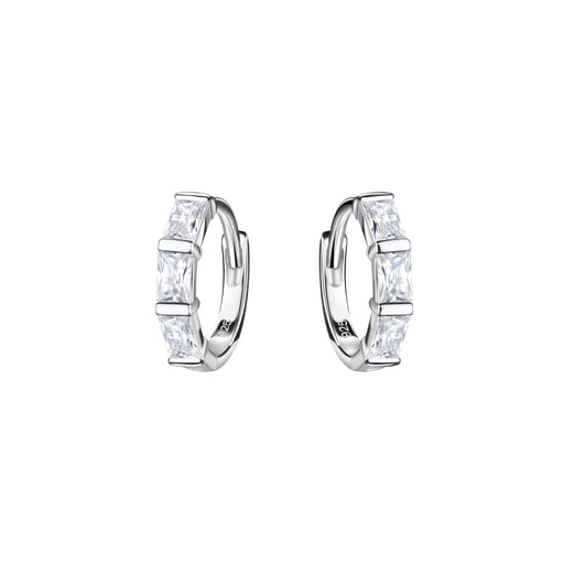 Sterling zilver 925 oorringen 11 mm - met drie rechthoekige zirkonia's. Elegant bescheiden formaat voor volwassen en ook zeer geschikt voor tieners...