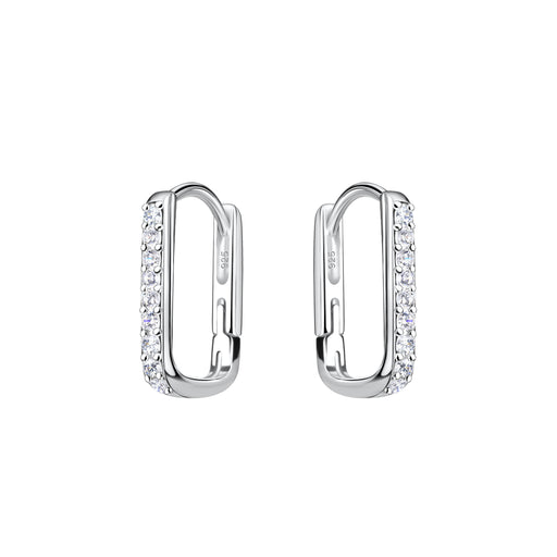 Joy|S - Zilveren rechthoek oorbellen - 12 / 9 / 1.5 mm oorringen - klap scharnier sluiting - ovaal hoekig met zirkonia - sterling zilver 925