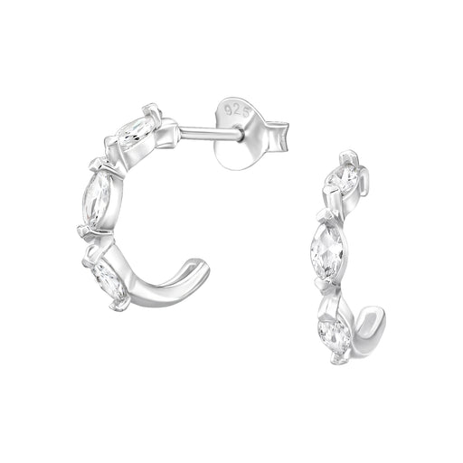 Sterling zilver 925 oorringen stud met marquise geslepen zirkonia's. Diameter oorring: 13 mm Dikte: 2 mm Materiaal: Sterling zilver 925 Afwerking: ...