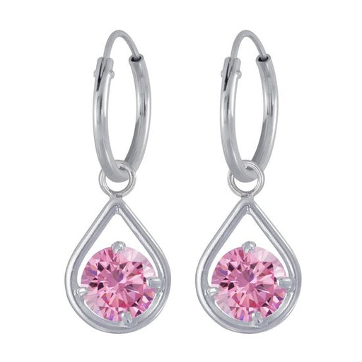 Joy|S - Zilveren tear drop bedel oorbellen zirkonia roze druppel oorringen