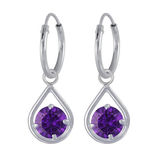 Sterling zilver 925 tear drop bedel oorbellen paarse zirkonia Design grootte druppel: 8 mm x 11 mm Diameter oorring: 1.2 cm Bewerking: E-Coat Mater...