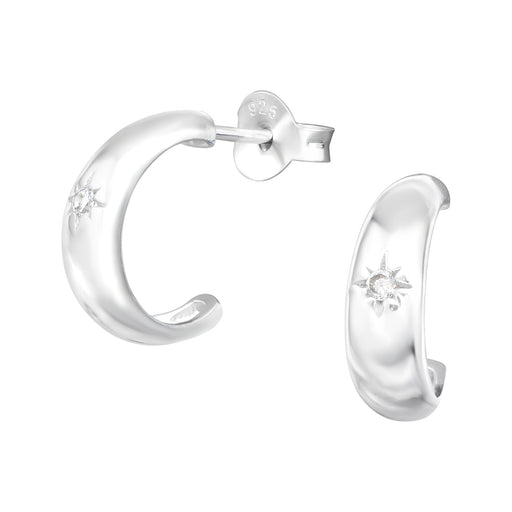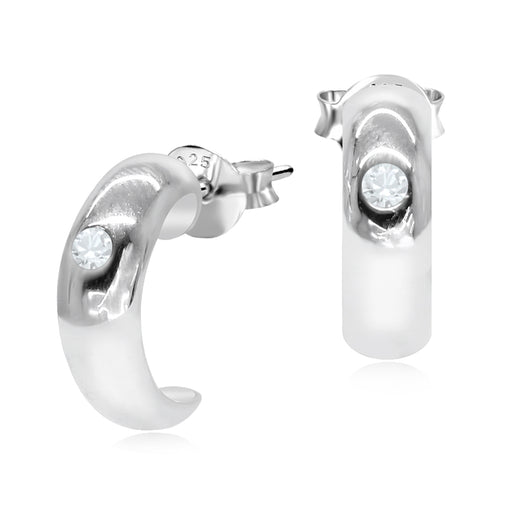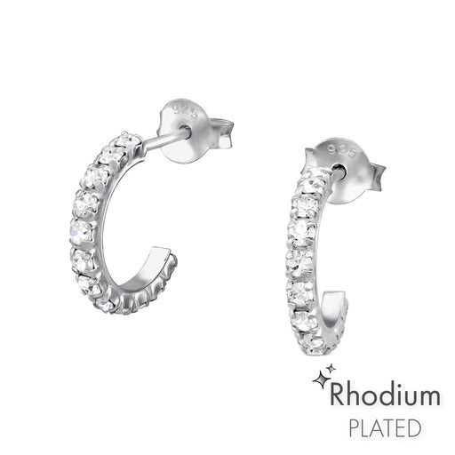 Joy|S - Zilveren oorringen stud - 12 mm - halve hoepel oorbellen - zirkonia