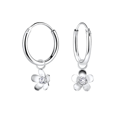 Sterling zilver 925 oorringen stud met 4mm bloem bedel  Materiaal : 925 sterling zilver Afwerking : E-coat Doorsnede: 14 mm Steensoort: Zirkonia  ...