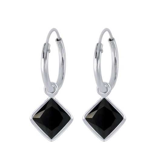 Sterling zilver 925 ruit bedel oorbellen met zwarte zirkonia Design grootte bedel: 6 mm x 6 mm Diameter oorring: 1.2 cm Bewerking: E-Coat Materiaal...
