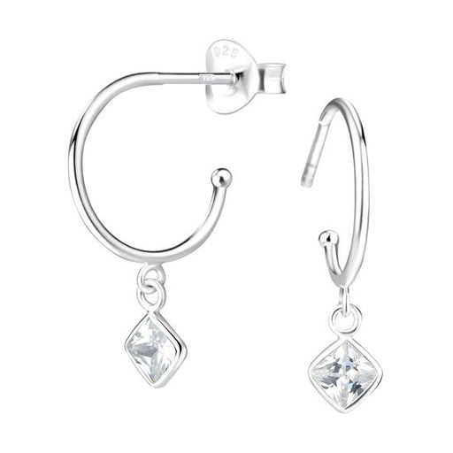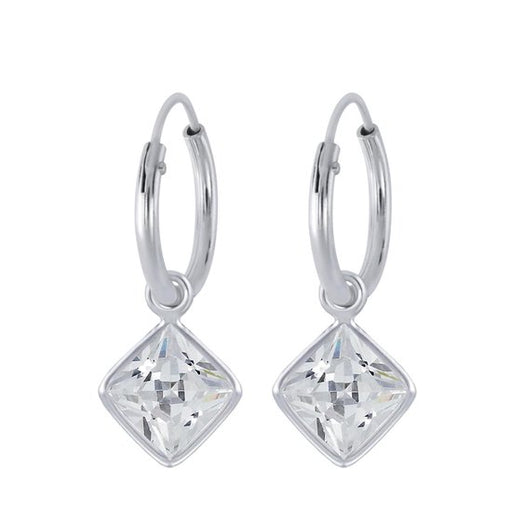 Joy|S - Zilveren ruit square cubic zirkonia bedel oorbellen