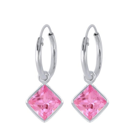 Joy|S - Zilveren ruit square cubic zirkonia roze bedel oorbellen