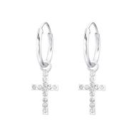 Sterling zilver 925 oorbellen / oorringen kruis bedel kristal Afmeting 0.7 x 2.3 cm Materiaal: Sterling zilver 925 Afwerking: E-coat Verpakt in een...