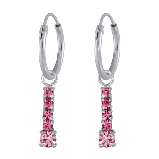 Joy|S - Zilveren classic bar / staaf oorbellen - roze kristal - oorringen