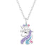 Sterling zilver 925 eenhoorn (unicorn) paardje met ketting - zilver met roze paars en blauw - kristalletjes.