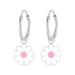 Sterling zilver 925 bloem bedel oorbellen wit met glitter roze