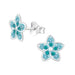 Sterling zilver 925 - Tropische bloem oorbellen - blauw met blauwe kristalletjes.