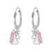 Sterling zilver 925 eenhoorn bedel roze/ wit oorringen.