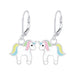 Sterling zilver eenhoorn/ unicorn oorbellen glitter wit en pastel.