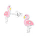 Sterling zilver 925 flamingo oorbellen - roze met gele snavel en een kristalletje.
