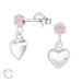 Sterling zilver 925 hartje bedel met roze kristal oorbellen.