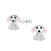 Sterling zilver 925 hond oorbellen - zilveren hondje met roze oortjes en kristalletjes.