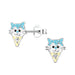 Sterling zilver 925 kat / poesje in een ijshoorntje oorbellen met een kristalletje