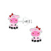 Sterling zilver 925 koe oorbellen - roze met zwarte pootjes en een rood strikje