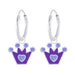 Sterling zilver 925 kroontje bedel oorbellen - paars en lila met glittertjes