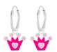 Sterling zilver 925 kroontje met roze en licht roze glitter oorbellen.