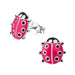 Sterling zilver 925 lieveheersbeestje oorbellen - magenta roze met zwarte stipjes.