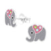 Sterling zilver 925 olifant oorbellen - grijs met roze hartje - kristal.