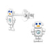 Sterling zilver 925 robot oorbellen, zilver met blauw oogjes en geel mondje en een kristalletje.