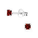 Sterling zilver 925 oorbellen met vierkant kristal rood.