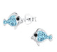 Sterling zilver 925 vis oorbellen voor kinderen - zilver met blauw kristal.